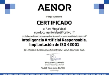 La Consultoría de Tecnología Aplicada se especializa en la implantación de la norma ISO 42001:2025, asegurando el éxito en auditorías, en la protección de datos y la ética en el uso de la Inteligencia Artificial en la empresa.