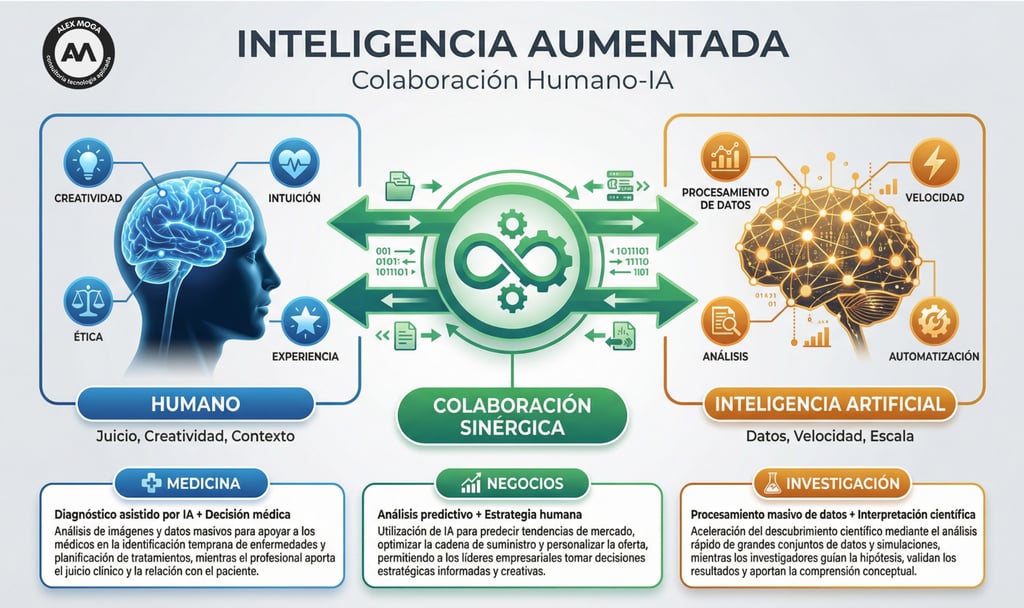 Es un enfoque tecnológico que combina la capacidad analítica de la inteligencia artificial con el criterio, la ética y la experiencia humana.